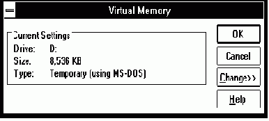 В этом окне отображаются основные характеристики виртуальной памяти, которые предлагает установить Windows. В поле "Drive" отображается имя диска, используемого для организации виртуальной памяти. В поле "Size" отображается максимальный объем дискового пространства, отводимого под виртуальную память. И последнее поле - "Type" содержит тип виртуальной памяти.