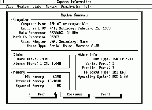 Для получения более подробной информации о той или иной подсистеме компьютера выберите соответствующий элемент из основного меню программы, расположенного в верхней части экрана. Например, для получения данных по дисковой подсистеме выберите элемент "Disks" из основного меню. При этом на экране выводится информация о дисковой подсистеме (см. Рисунок 11.2).